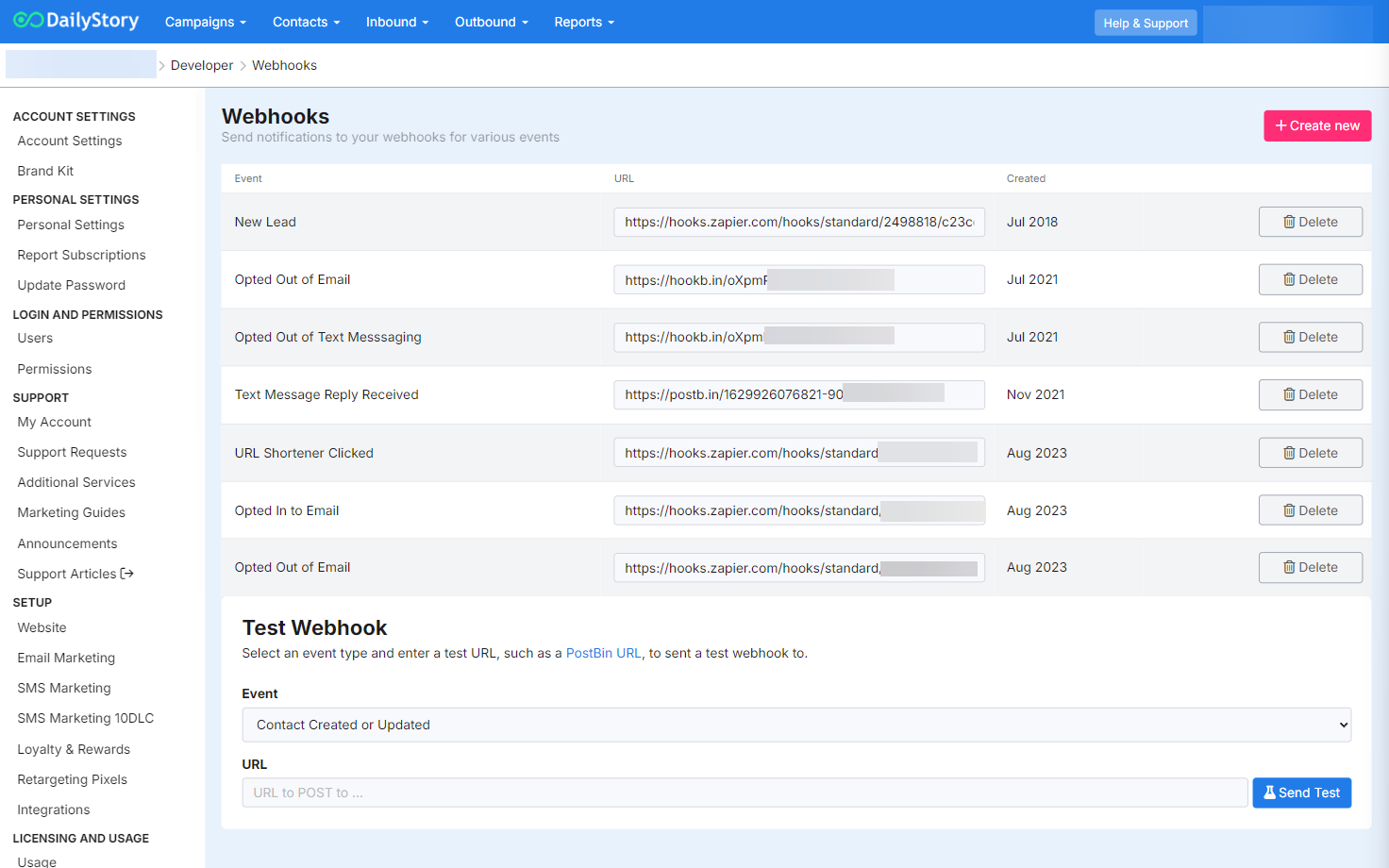 A webhook is a URL that DailyStory will send an HTTP POST with related data to when events occur within DailyStory. Using a webhook enables your application to receive notifications for events.
